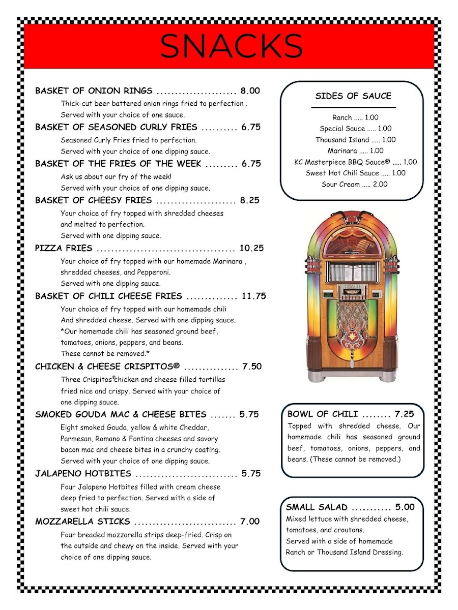 French fries topped with our homemade marinara sauce, shredded cheese, and pepperoni. Served with your choice of one dipping sauce.